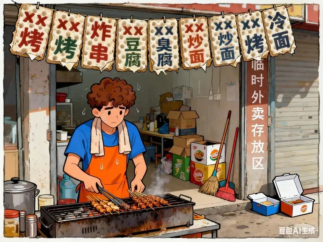 检察官调查发现,一间40平方米左右的房间,除了厨房操作间外,被经营者隔断出6个约4平方米左右的小房间,准备了10多张泡沫纸板招牌,用于隔断间的轮换使用,充当外卖档口。但实际上,6个隔断间中,1个隔断间作为烧烤操作区域,2个隔断间堆满设备、柜子等物品,另外3个隔断间当作临时存放外卖区域和其他物品仓储使用,均不具有独立的餐饮生产操作条件,未有相应的经营主体,未实际生产经营,均为虚假的餐饮档口,相应线上10多个外卖商家均为虚假的店铺信息。而且,该后厨操作区域卫生状况较差,地面布满污渍,物品乱堆乱放,厨余垃圾随地堆放,食物盛具留有残渣油污,烧烤区调味料洒落桌面地面等,其食品生产经营活动存在食品安全隐患。