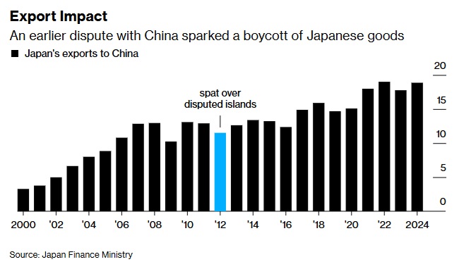 对东京而言,经济利害关系重大。中国是日本最大的贸易伙伴,而“玉渊潭天”的评论明确指出,日本制造商在关键材料上高度依赖从中国进口。早在2012年,中日因岛屿争端爆发的早期摩擦,就曾引发长达数月的日本商品抵制运动,对贸易造成影响。