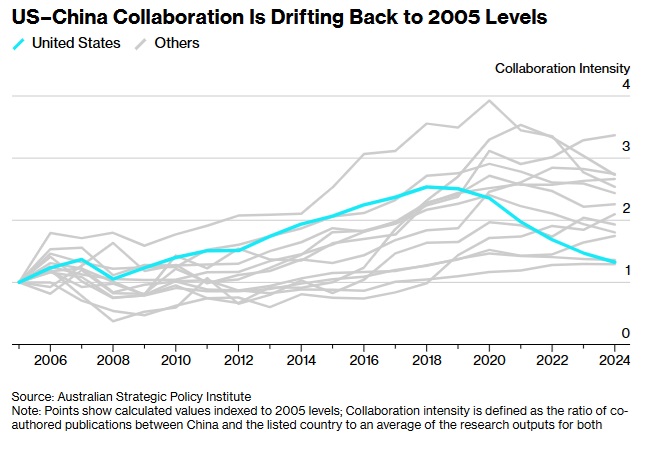 一项研究显示,中美在科技研究领域的合作持续下降,已降至过去20年来的最低水平。澳大利亚一家智库警告称,这一转变可能重塑全球创新格局,而全球创新对安全与经济增长至关重要。
