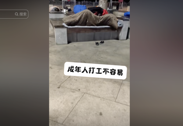 2025年10月底,网友拍摄江苏苏州昆山的露宿者。(视频截图)