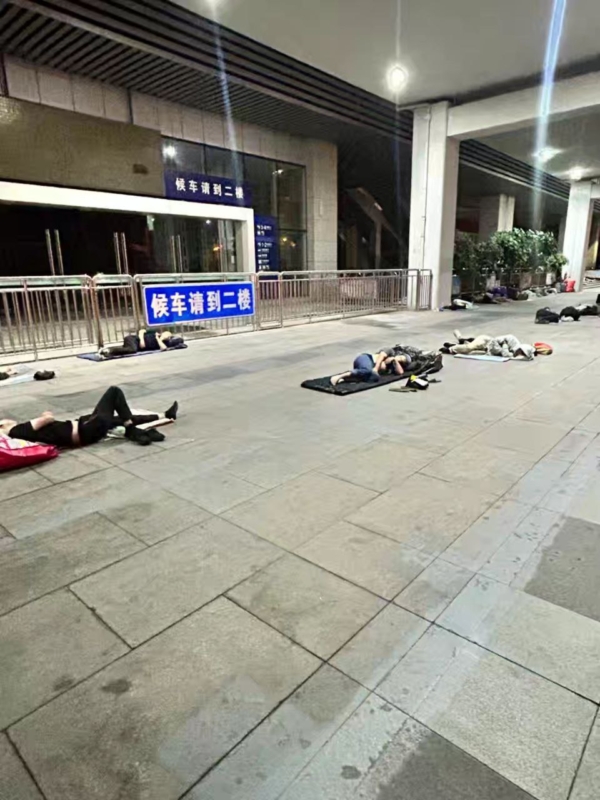 江苏苏州昆山,29岁,做日结短工的青年冯明(化名)告诉记者:“以前睡在公园,现在公园不让睡了。现在睡火车站2楼入口处,底下就是可以睡觉的。在公园里应该是影响不好,因为人家晨练和跑步,你睡在那里,人家也不好锻炼。”