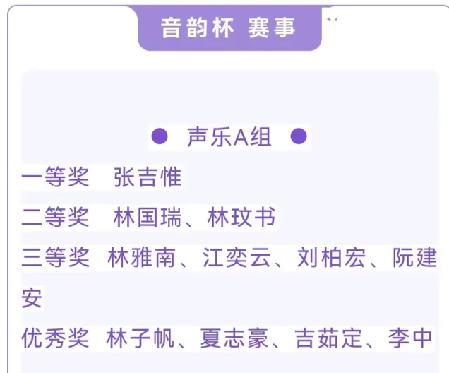 2021年,某艺教机构公布了其声乐比赛的获奖名单,其中,“最忙五人组”斩获一、二、三等奖。 其他获奖者名单,也同样出自网络人名库。
