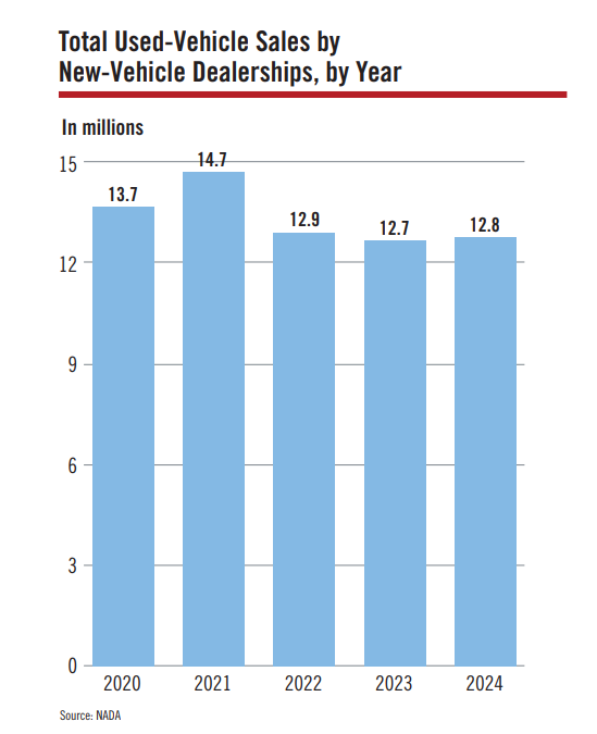 先来说渠道。在美国,你想买一台二手车,其实可以直接找官方授权的经销商,也就是4S店。在2024年,全美通过授权经销商销售的二手车就有1280万辆,占了整个市场的32%。