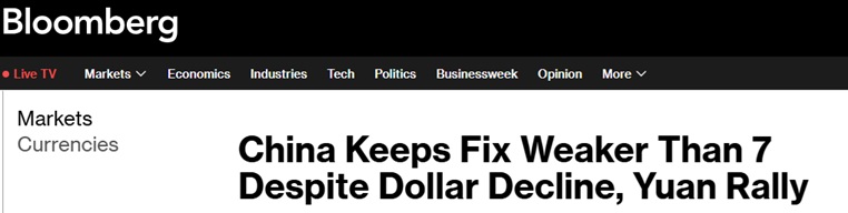 彭博社周三(1月21日)最新报道,中国将人民币兑美元的每日中间价设定在低于7的水平,这表明面对近期美元走软,北京有意放缓人民币升值步伐。