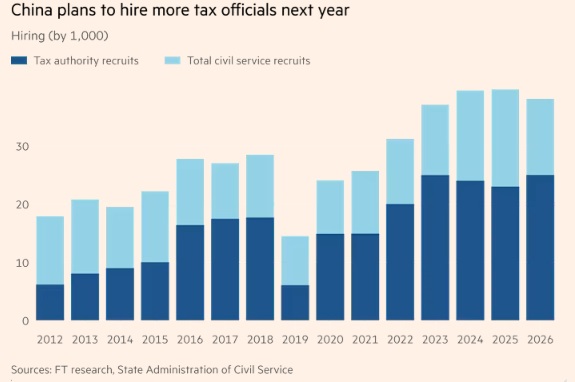 根据国家公务员管理局的数据显示,中央和地方政府的税务部门计划在2026年招聘25,004名工作人员,占将从数百万参加激烈竞争的国家考试的人员中选拔出来的新官员的三分之二。