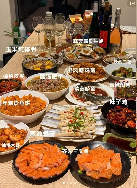 至于动手自制年夜饭,我想这也是很多留学生的保留节目了。高精力留学生一人能做好几道菜,从糖醋排骨到地方特色一应俱全,正是各地的野生厨神大展身手的时候。