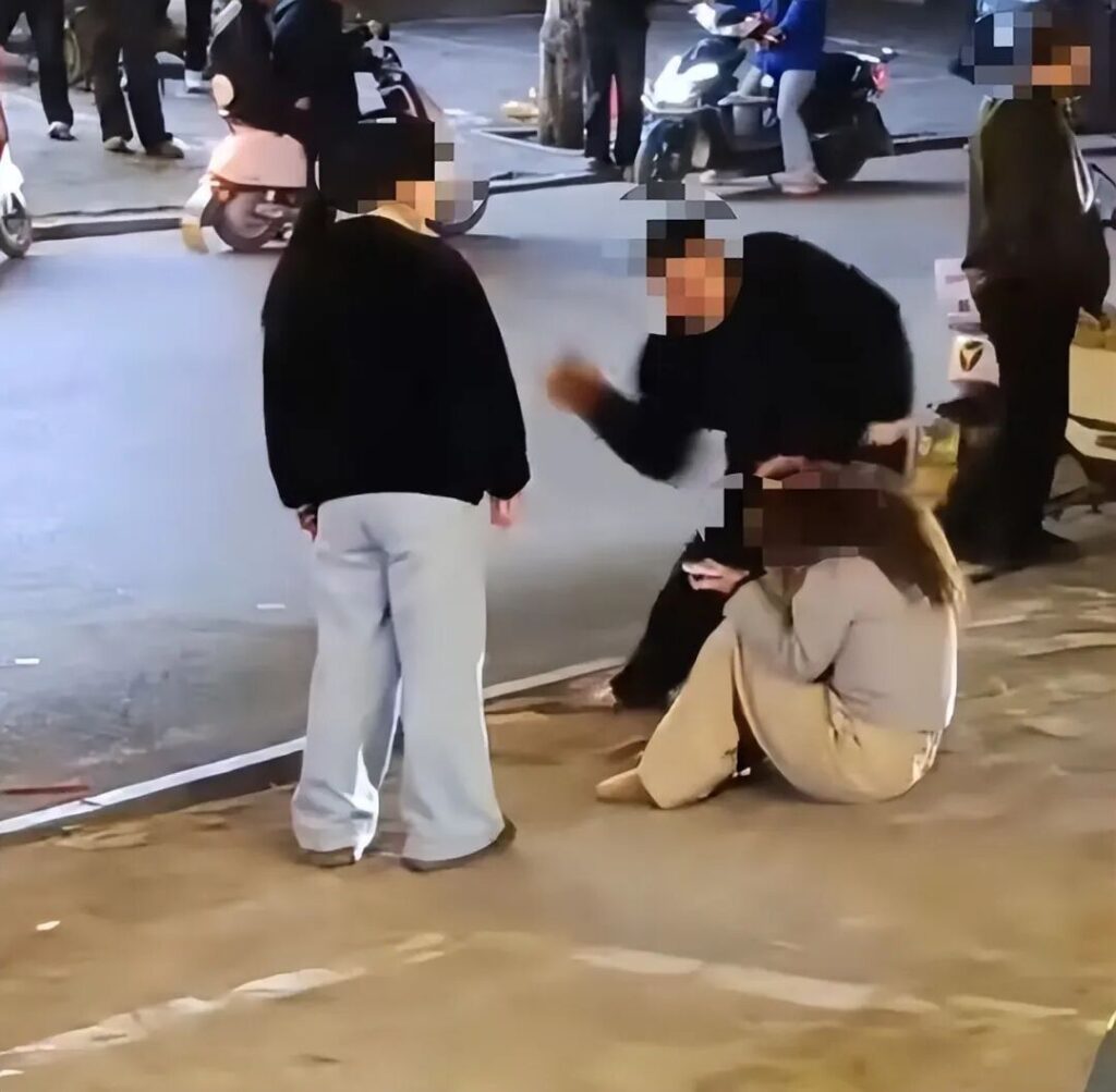 刘某飞夫妇到场后未询问情况,直接对女孩施暴:男子持砖块猛击其头部至少3次,并用拖鞋反复抽打面部;女子用脚猛踹腰部,致女孩当场倒地无法站立。过程中,三名上前劝阻的路人(含一名怀抱婴儿的女士)亦遭殴打辱骂,婴儿险受伤。