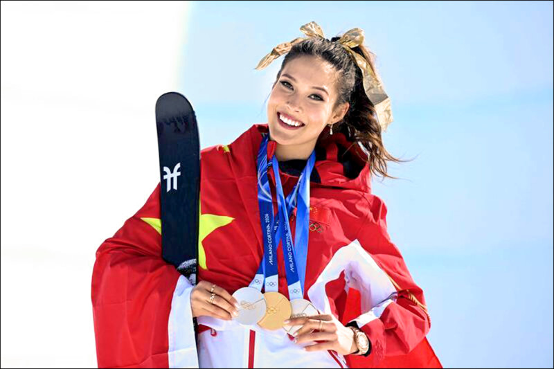 华裔美籍谷爱凌为“中共国”披挂上阵。 (法新社文件照)