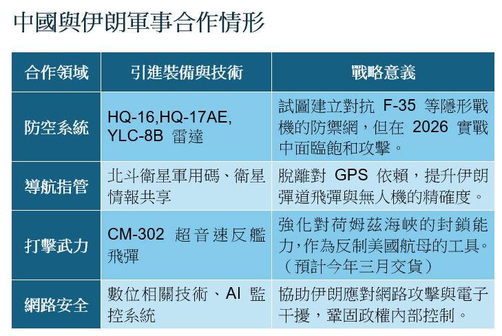 专家表示,过去数年,北京在伊朗问题上玩了一场极其精巧的双面游戏。 表面上,北京多次答应华盛顿将协助施压德黑兰放弃核威胁与地区挑衅,甚至在联合国表态支持部分制裁; 但在实践中,北京却是伊朗生存与军扩的总后勤部。 北京并非在解决威胁,而是在养大威胁。 透过强化与俄罗斯的战略协作,中方持续向伊朗输送精密电子组件、军规微处理器以及HQ-17AE等先进防空系统,帮助伊朗在严厉禁运下实现军工体系的代差升级。 更隐蔽的是,中国透过卫星情报共享(北斗系统)与反隐身雷达技术(YLC-8B),暗中构建伊朗的反干预能力,这次美方行动前,中国更刻意揭露美军部署F22的卫星照片,帮伊朗安神造势。