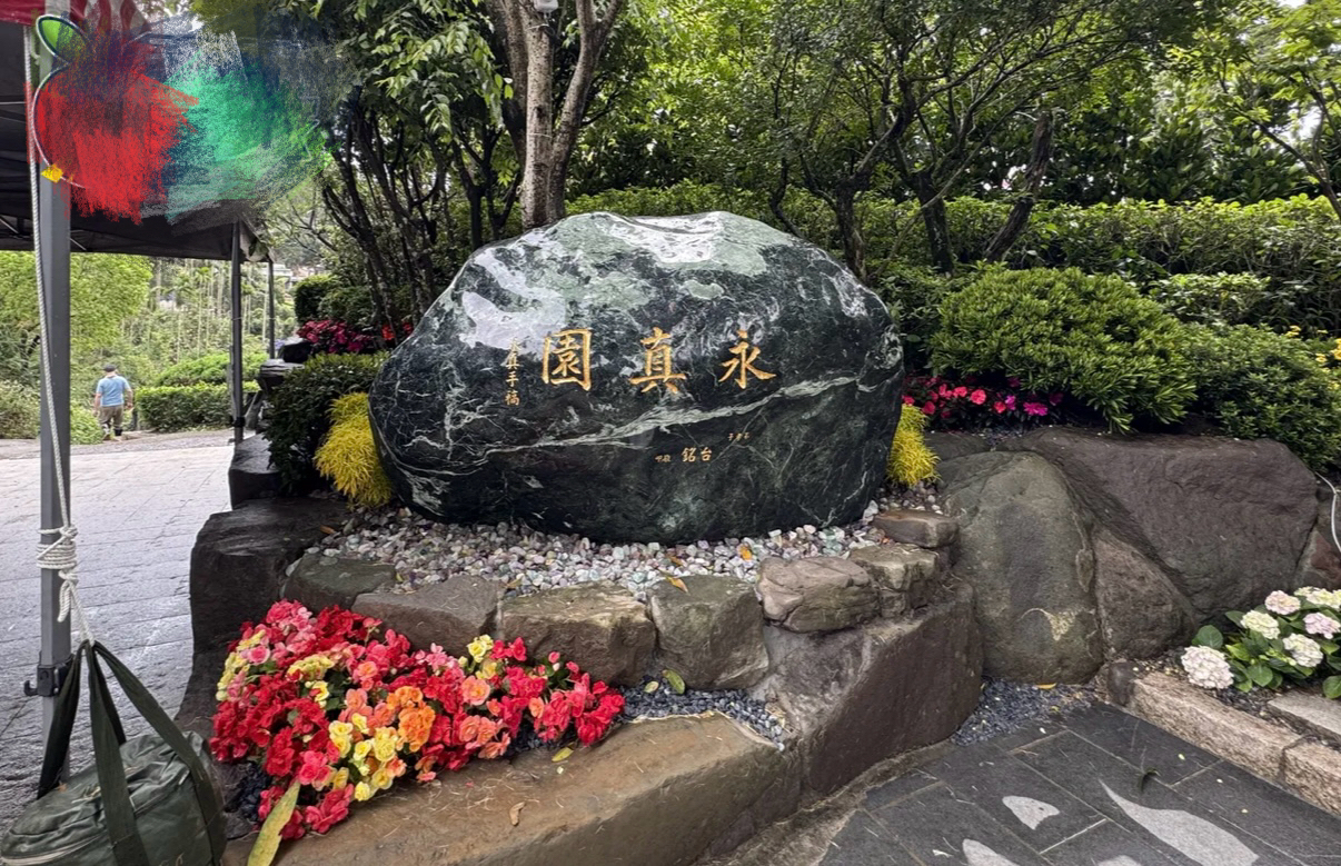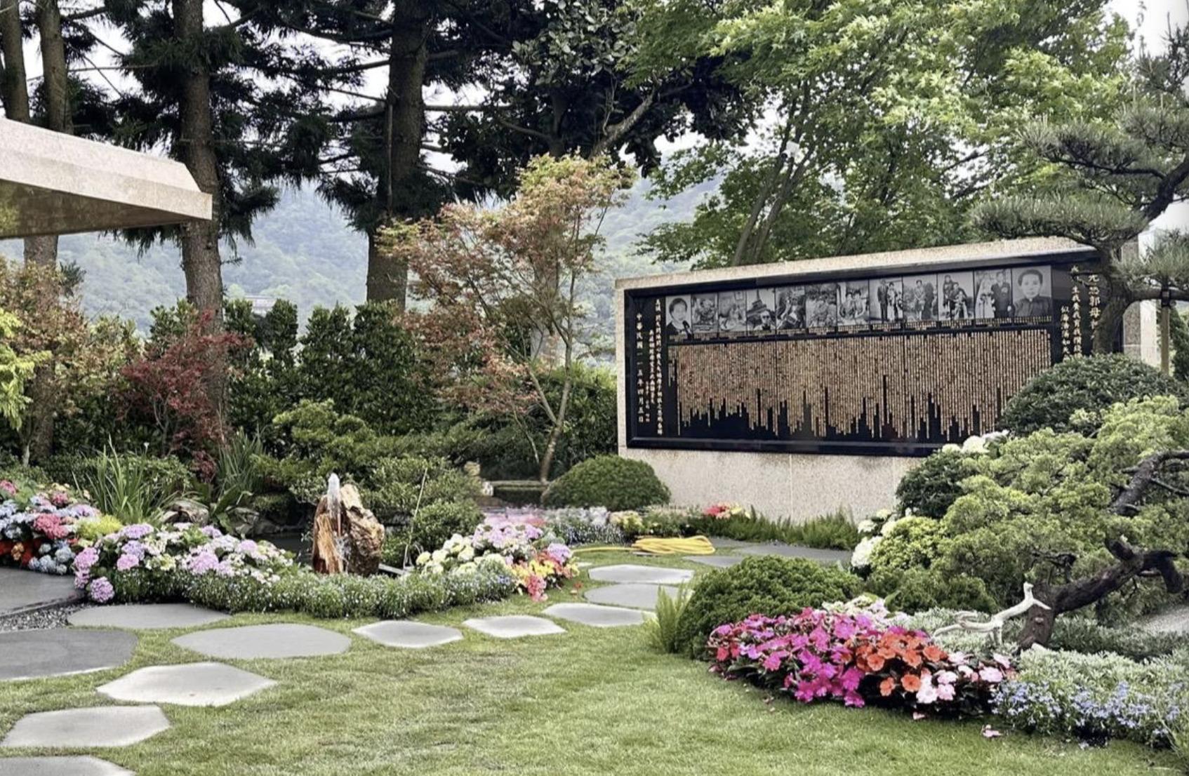 在这块大理石墙上,除了有六千字的内容外,在石墙的最上排,还有12张初永真的照片,从初永真年轻到年老的时候都有。特别留意到最后的落款人是郭台铭,他以“不孝子”自称,落款的时间为2026年4月5日,也就是说清明的时候这个大理石墙才正式落成,郭台铭一家人要亲自去扫墓。不过因为是私人行程,以及是私人墓地,所以不会特别对外开放,包括家族墓园“爱物园”也是如此,在园内四处都摄像头,园外还有保安看守。