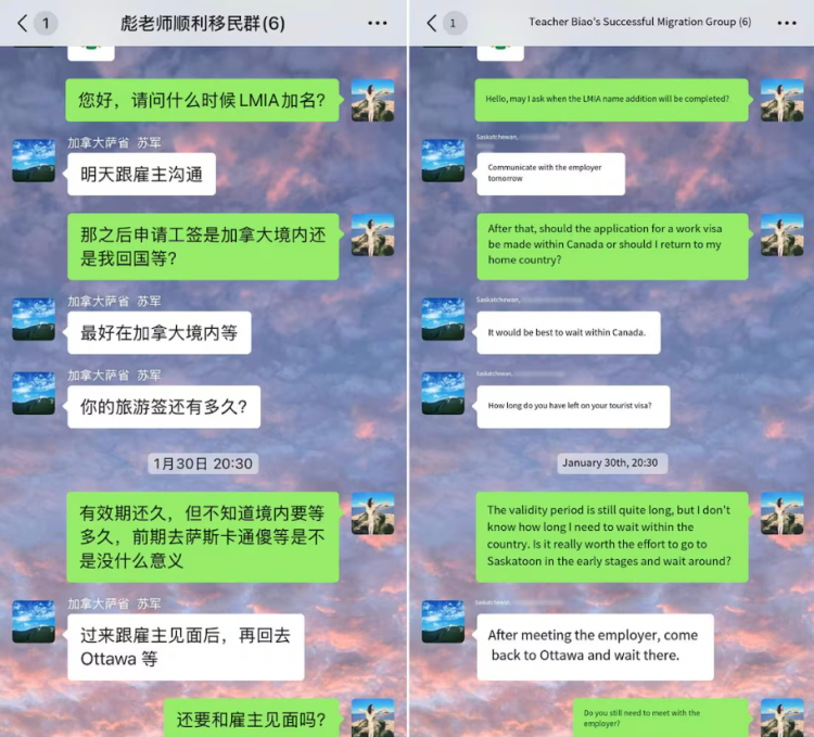 CBC查阅了包的微信对话,发现苏在几个月的时间里一直在向她提供指示和移民指导。