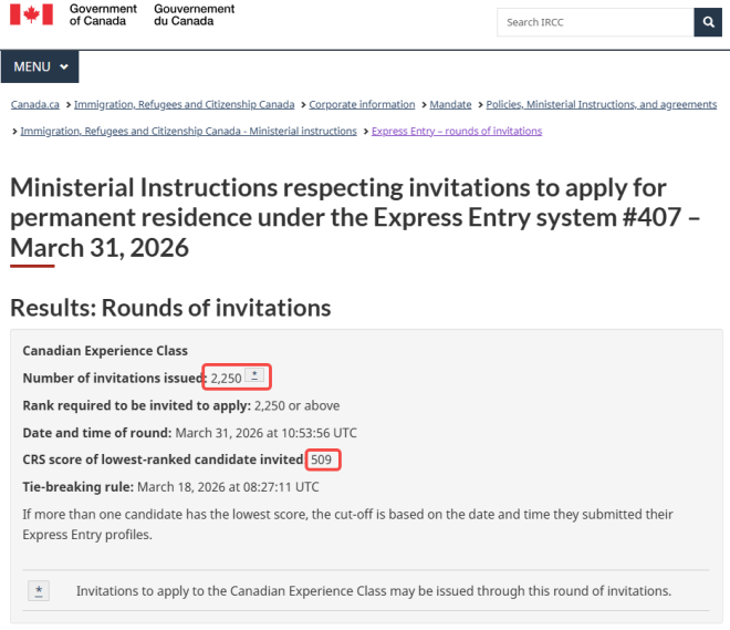 本轮共有2.000名加拿大经验类(CEC)候选人获得邀请,是2026年以来名额最少的一次。