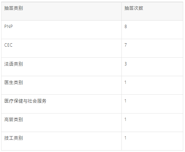 名额减少:邀请人数比上一次(2.250人)减少了250人,是今年规模最小的一次CEC抽选。