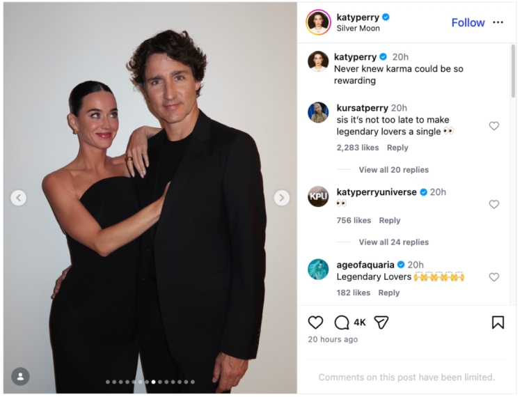 凱蒂·佩里現在眼裡只有特魯多 深情凝視終有回