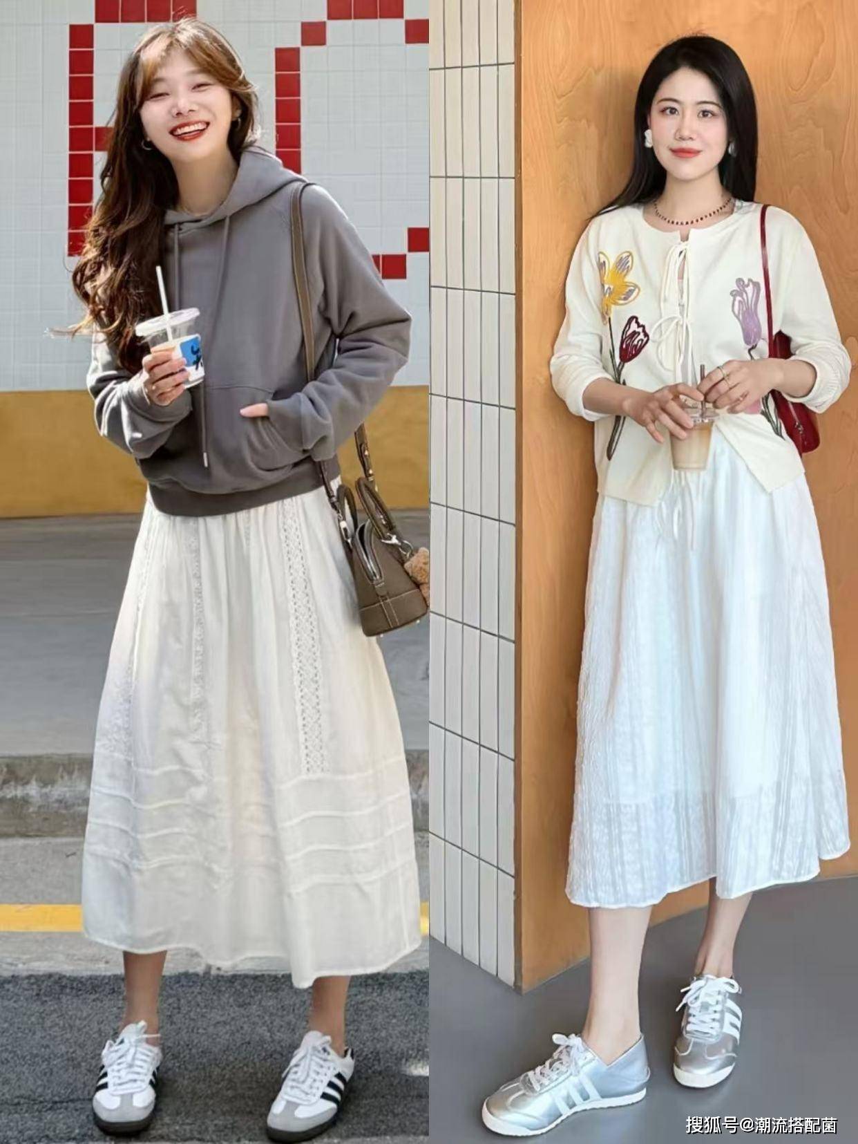 今春最時髦的混搭方式:“裙子+運動鞋”