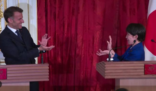马克龙和高市早苗互摆“龟派气功” 画面疯传