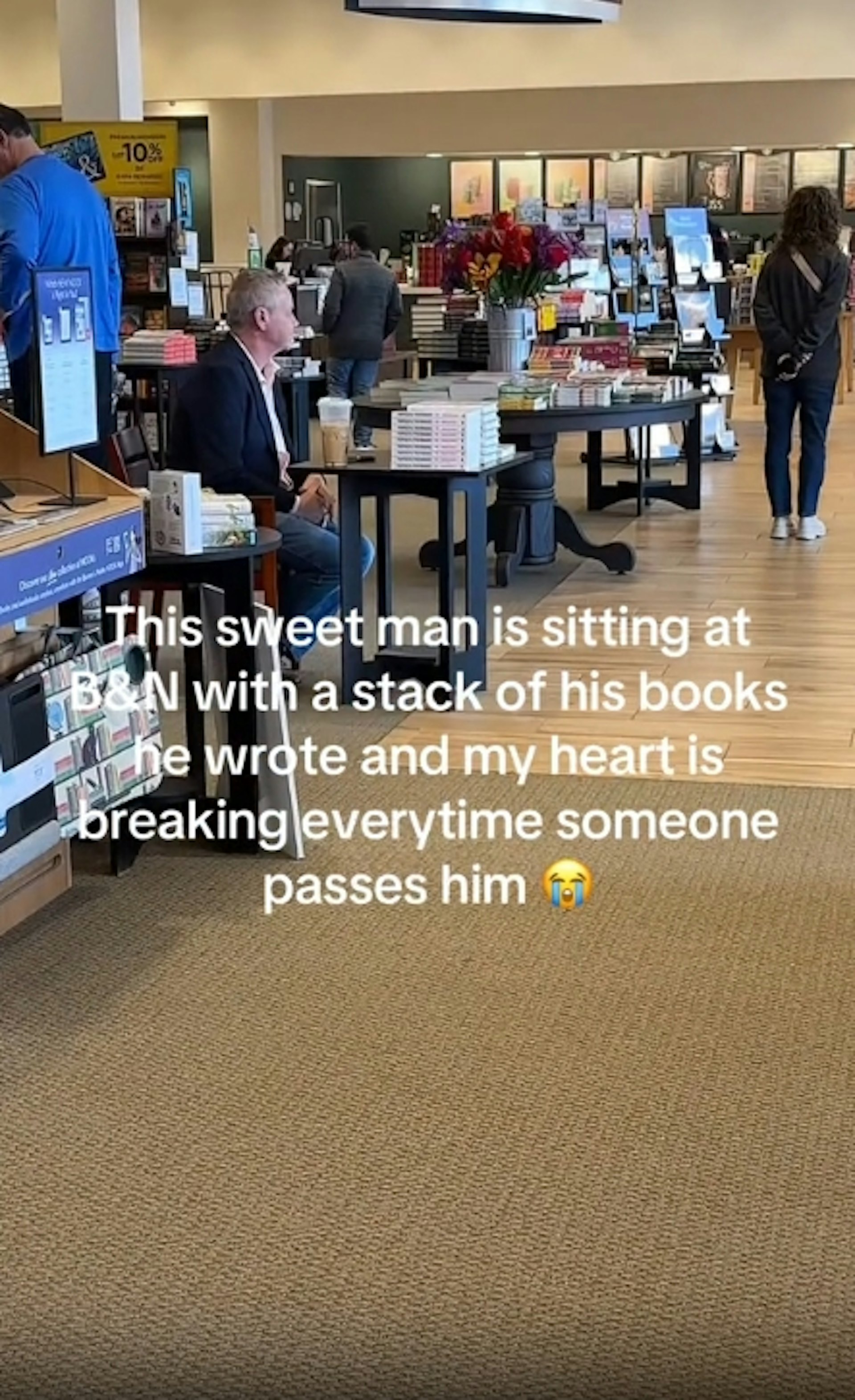 美国宾夕法尼亚州一名女子路过书店时,发现男作家独自坐在自己的签书会中,身旁却没有任何读者。