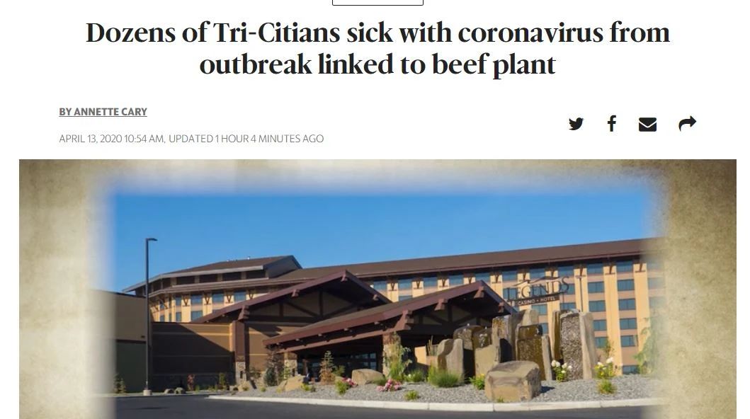 该工厂拥有3700名员工,截至4月12日已有近300名员工新冠检测呈阳性,占该州总感染人数的55%。