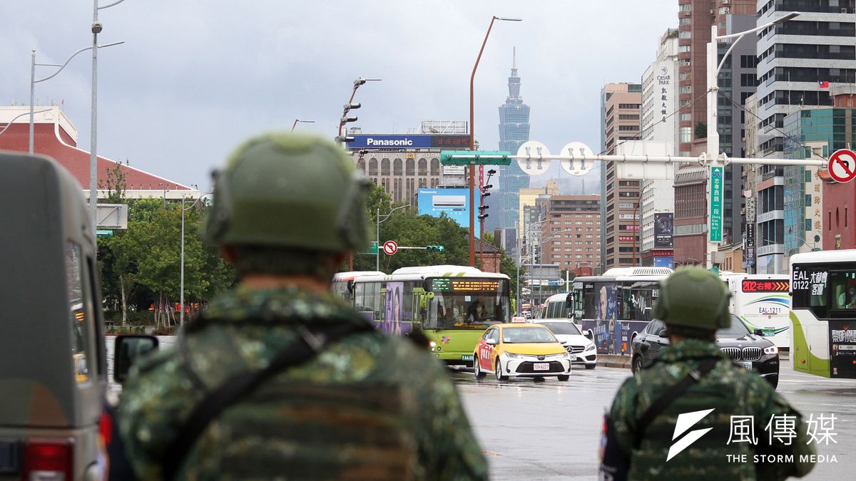 20230727-汉光演习刻正进行,宪兵部队27日一早于北市市区设置“拦检点”。(苏仲泓摄)