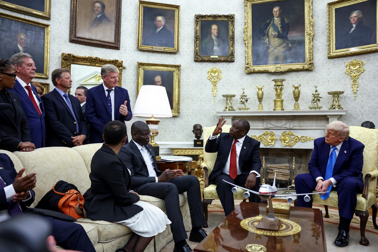 据指出,拉马福萨此行访美寻求讨论贸易和关键矿产问题,试图获得美国支持,未料川普早有准备,当记者提出南非白人问题后,川普即场播片及展示新闻文章,称白人农民在南非遭到“种族灭绝”,促使拉马福萨即场反驳。
