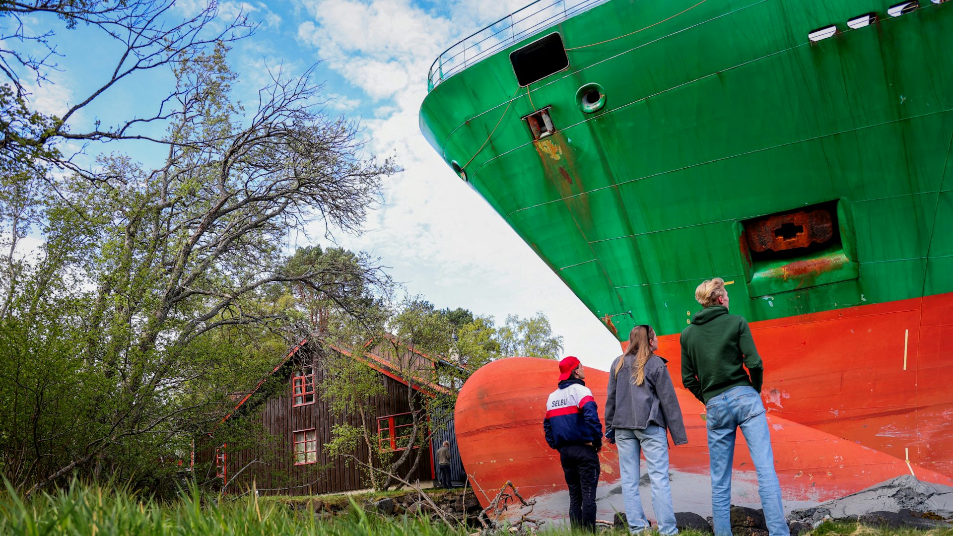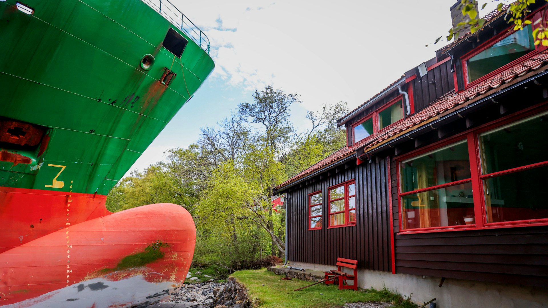 A Norwegian overslept the arrival of a 135-meter cargo ship that parked at his house