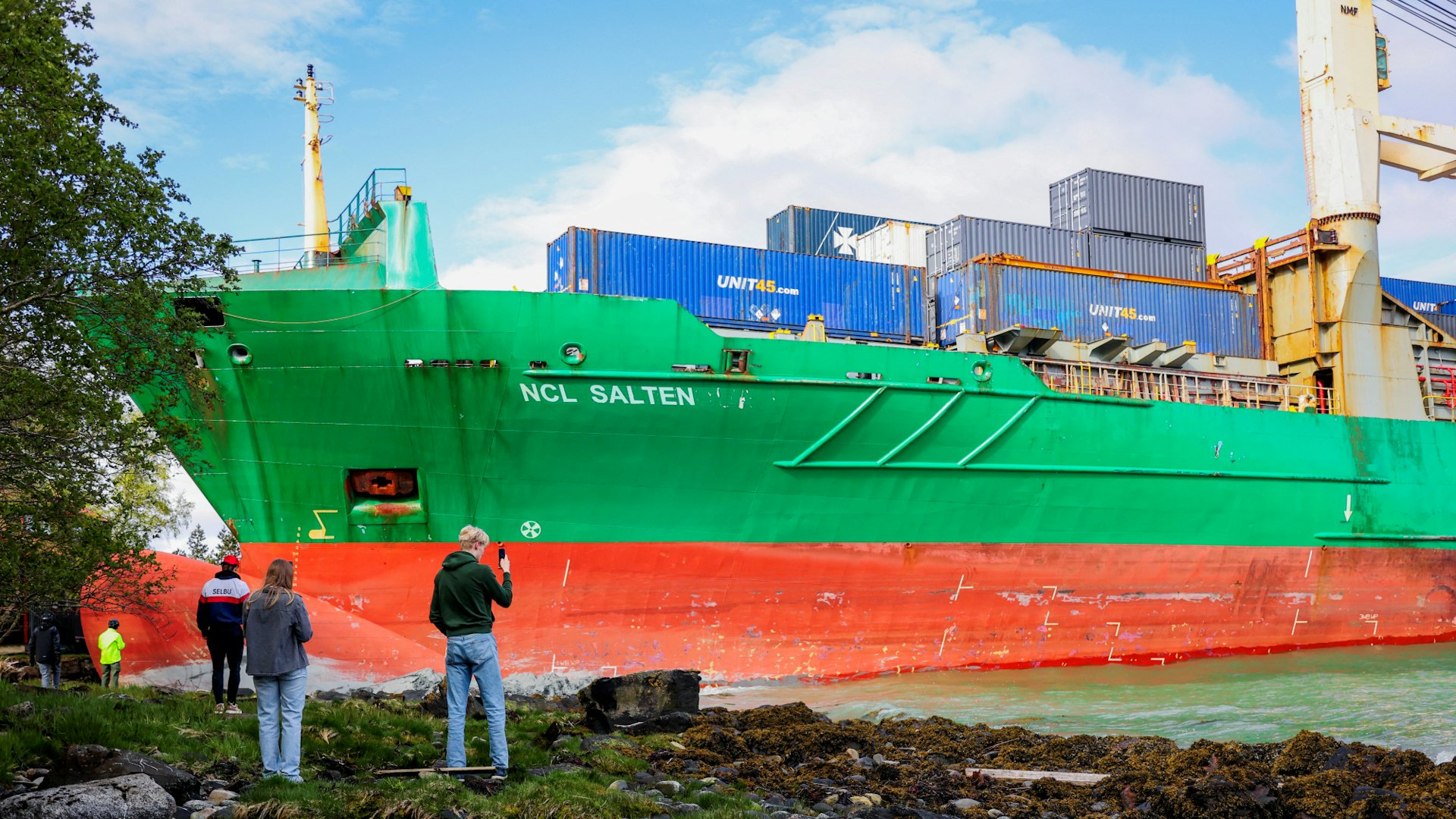 The cargo ship NCL SALTEN lost course at night, missed a shoal west of Trondheim and ran its bow onto the coast. For a long time, neighbors could not find… pic.twitter.com/CF8x4eYcnJ