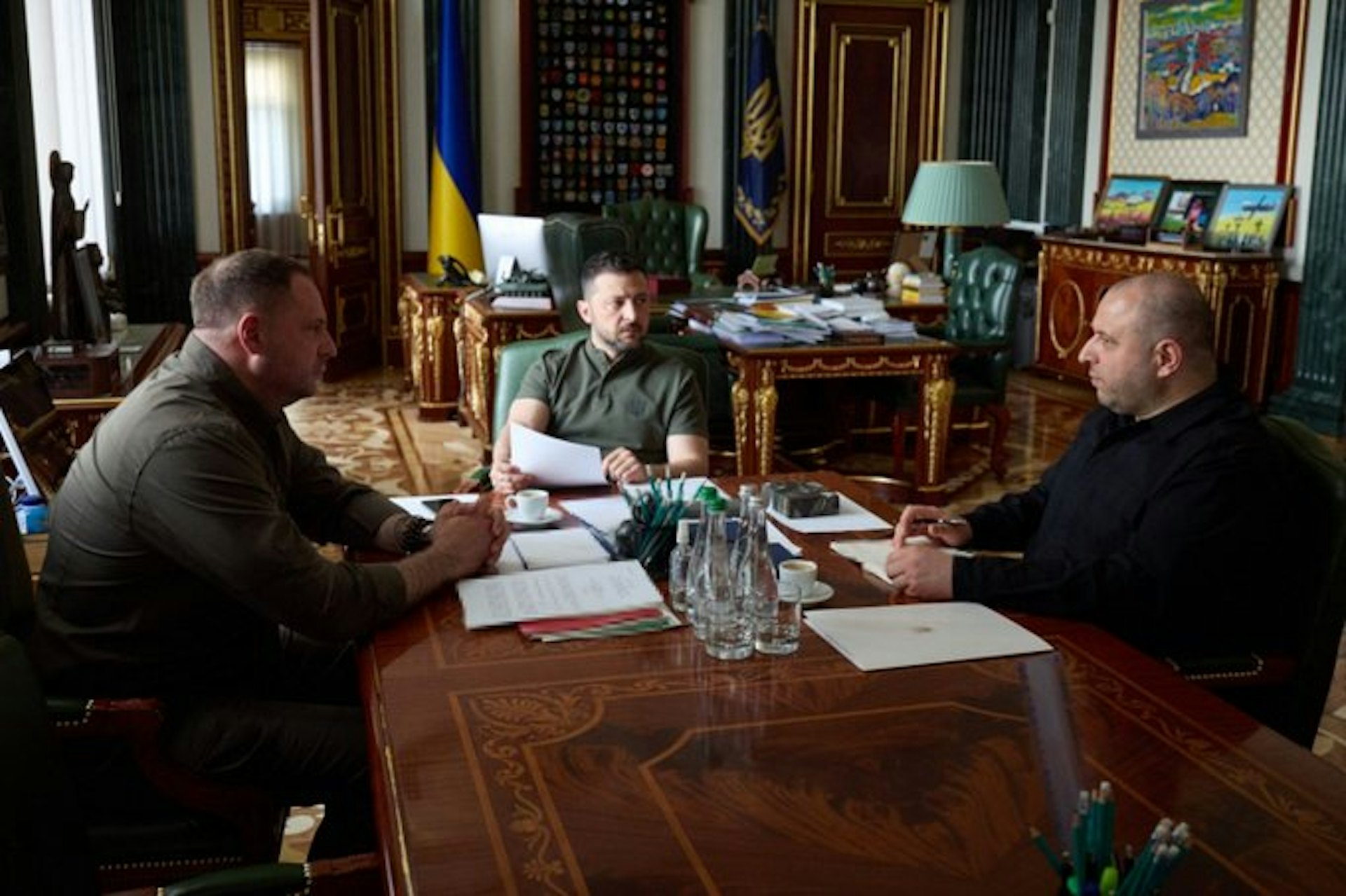 2025年8月3日,图为泽连斯基在社交平台发布图片,他与国家安全与国防委员会主席乌梅罗夫(Rustem Umerov)和乌克兰总统办公室主任叶尔马克(Andriy Yermak)进行会谈。(X@ZelenskyyUa)