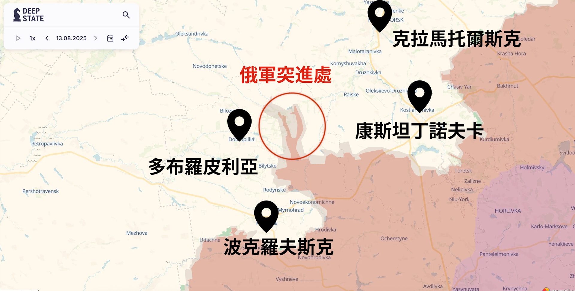 根据和乌克兰军方有联系的DeepState网站,在8月11日至12日之间,俄军突然在顿涅茨克两个前线城市康斯坦丁诺夫卡(Kostyantynivka)、波克罗夫斯克(Pokrovsk)之间向前推进了10至15公里,速度为一年多以来所未见。