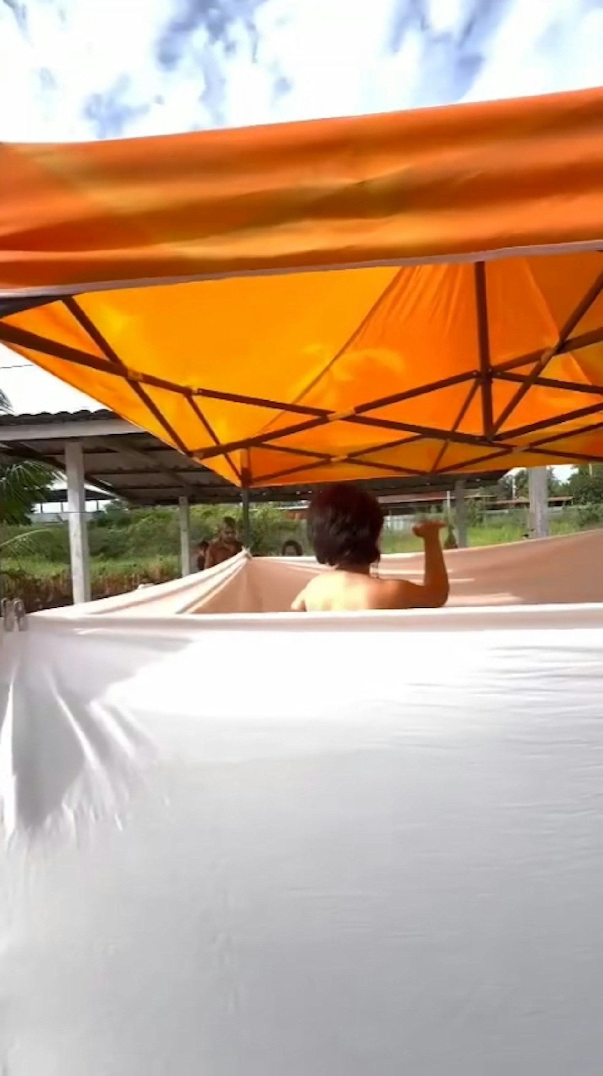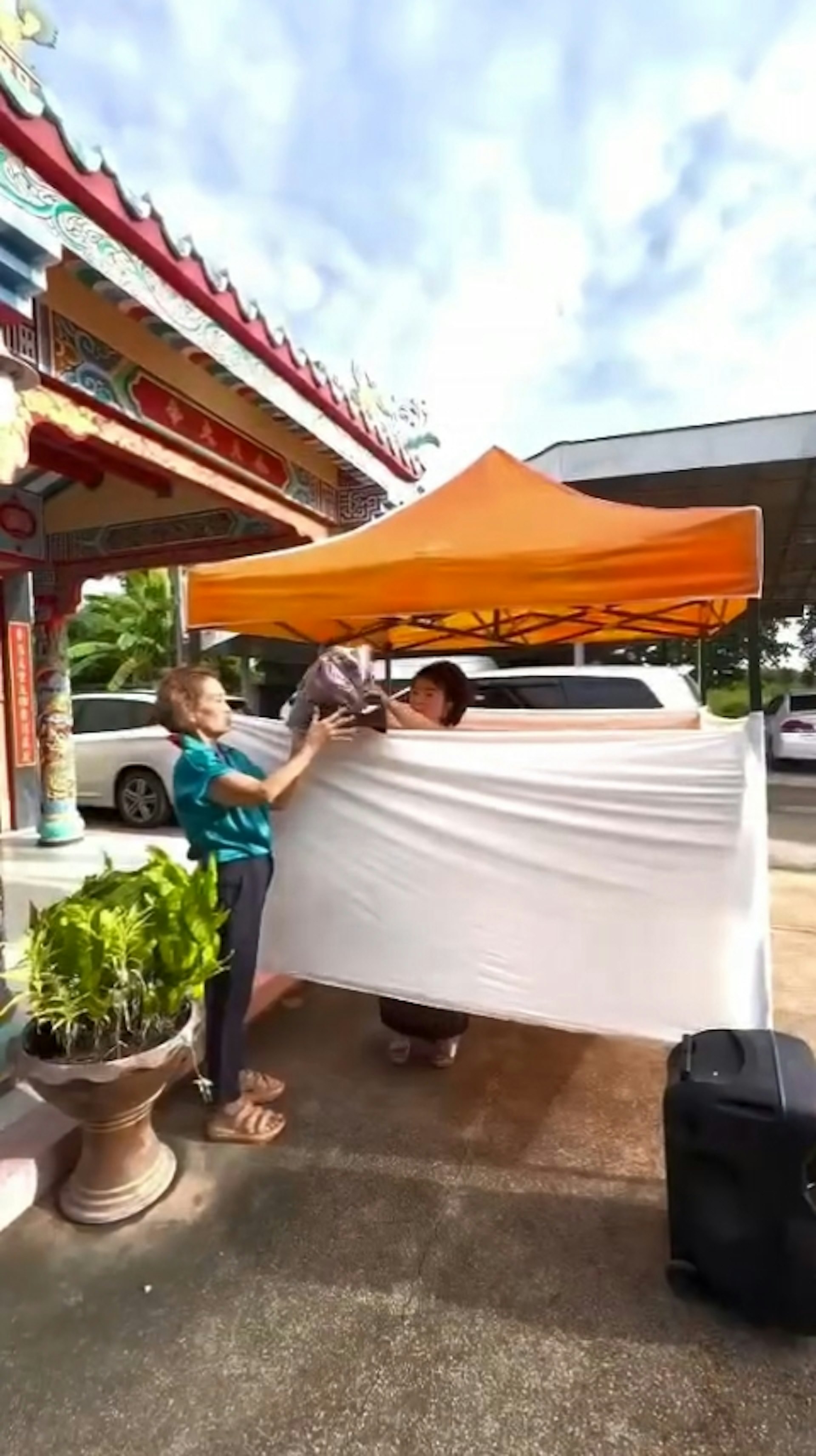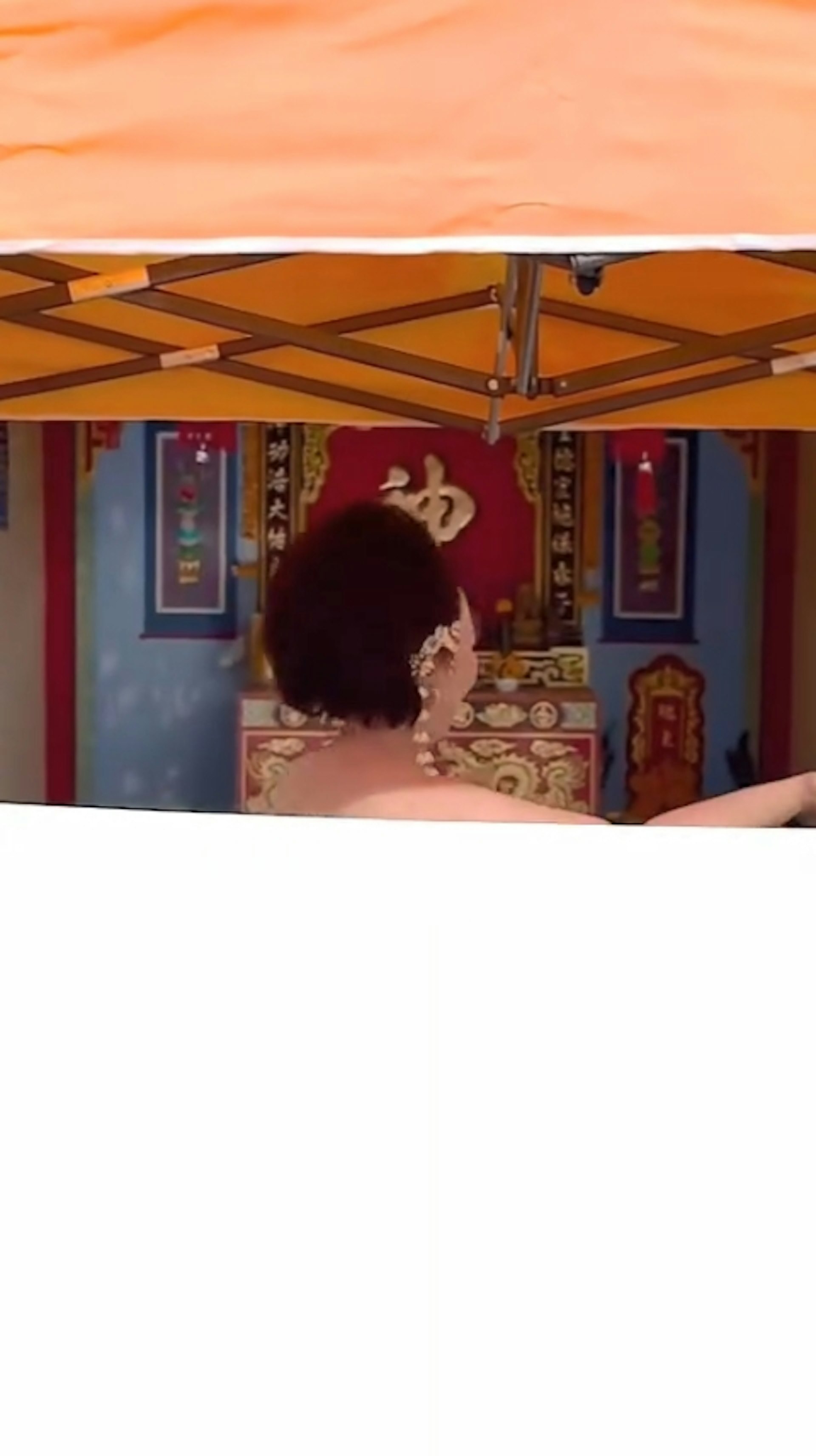 阿玛拉特1日现身佛统府一间寺庙,并在庙前的广场搭建临时棚子,用白布围出私人空间后开始脱衣,并表演传统舞蹈。