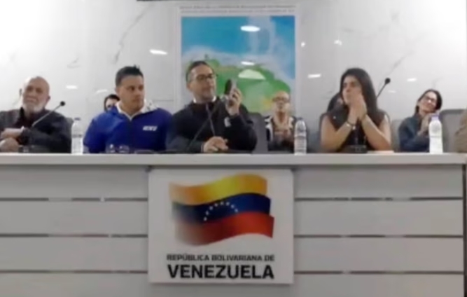 据英国《卫报》1月23日报道,在与委内瑞拉政权关系密切的各界人士面前,通讯部长尼亚涅斯举起手机对着麦克风。